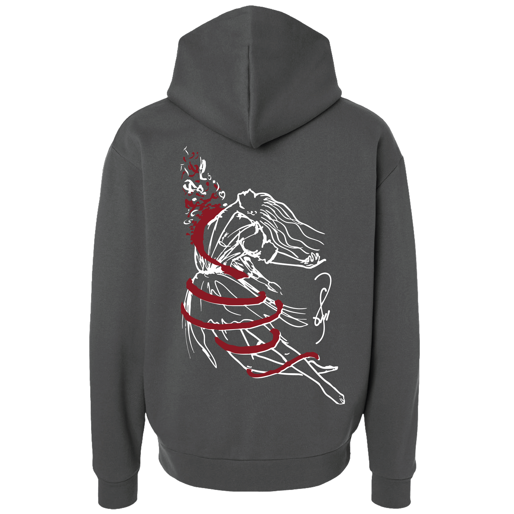 Sketched in the back of a notebook during a class in Tehran, this piece is as authentic as it gets. The sketch shows a dancer being tied by a ribbon, but her heart is still set on one thing: freedom for everyone. Shamayel’s sketch represents a universal wish that everyone, everywhere, should have the right to live freely. When you wear this hoodie, you’re carrying a story of hope from halfway across the world.